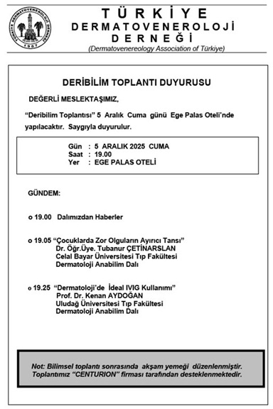Türkiye Dermatoveneroloji Derneği 2025 Yılı Deribilim Toplantı İçerikleri