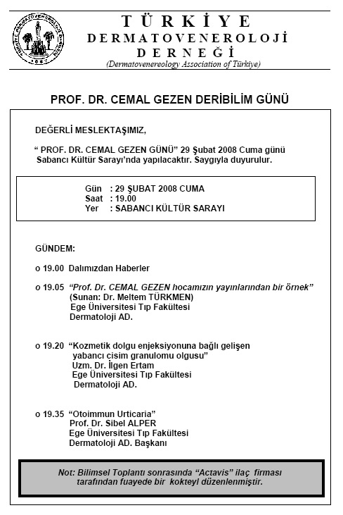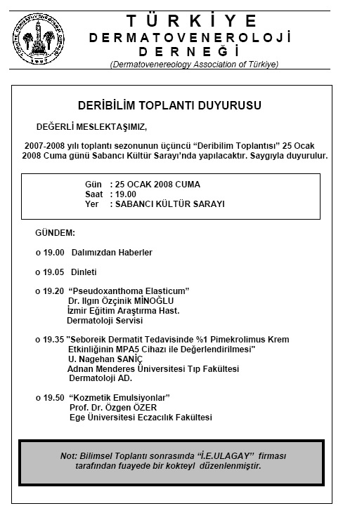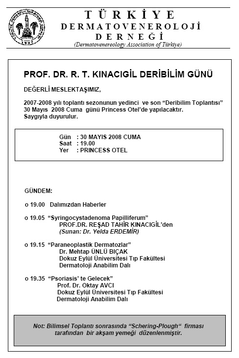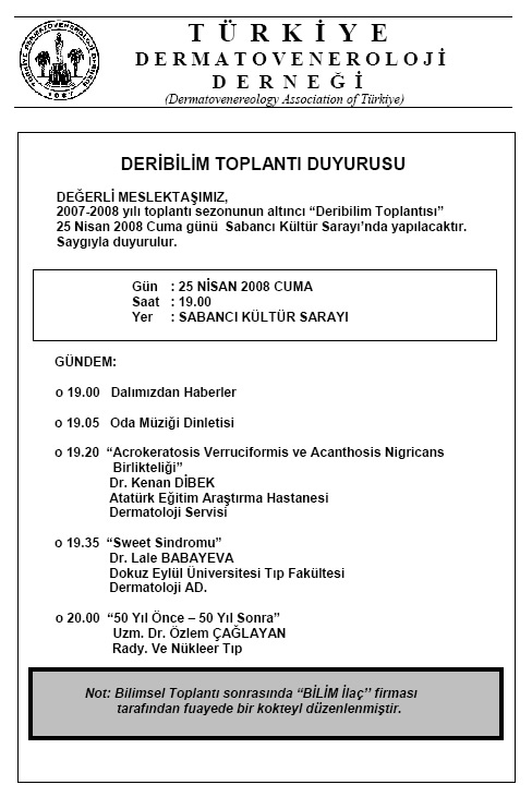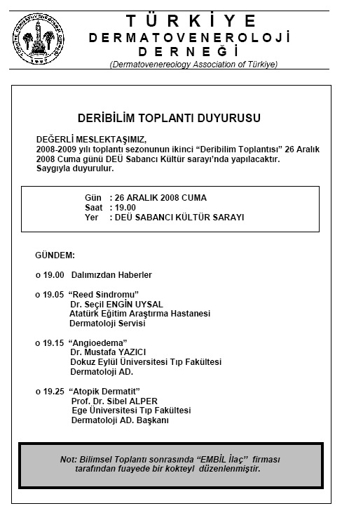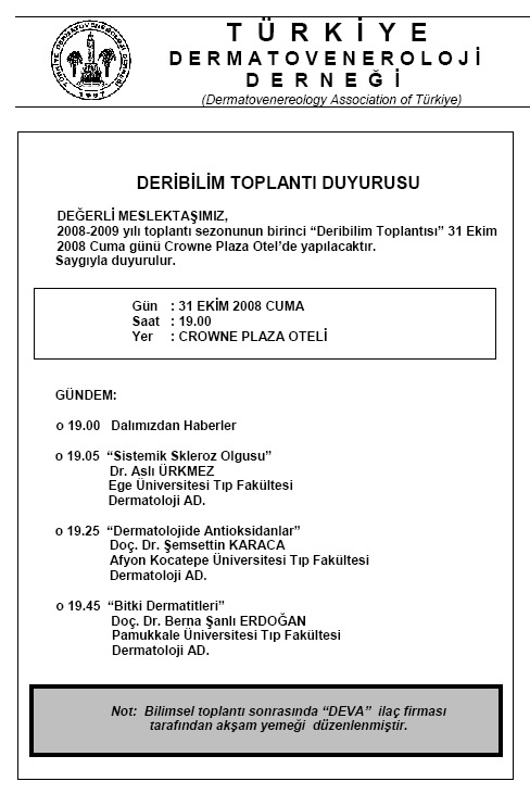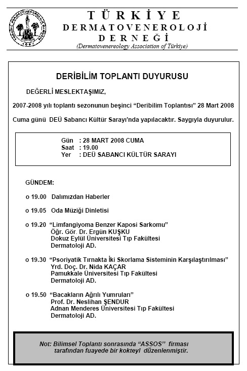 Türkiye Dermatoveneroloji Derneği 2008 Yılı Deribilim Toplantı İçerikleri