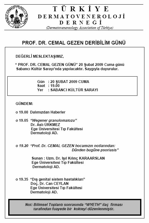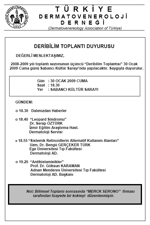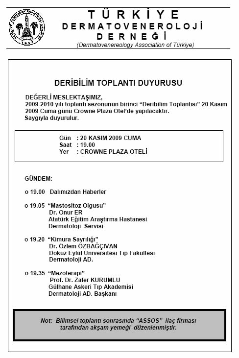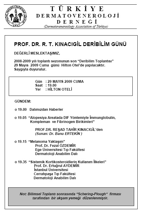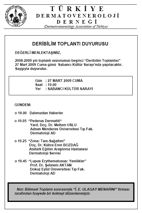 Türkiye Dermatoveneroloji Derneği 2009 Yılı Deribilim Toplantı İçerikleri