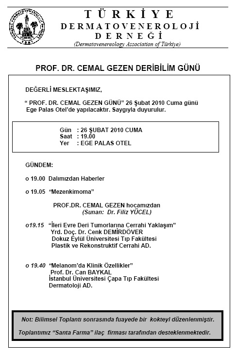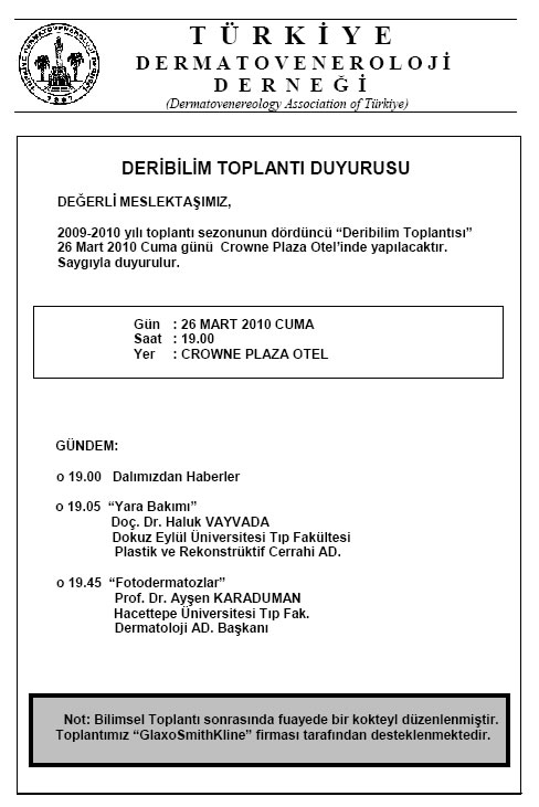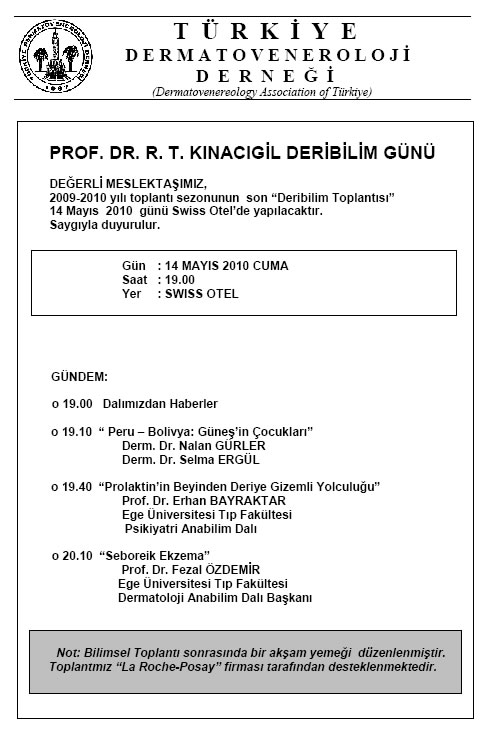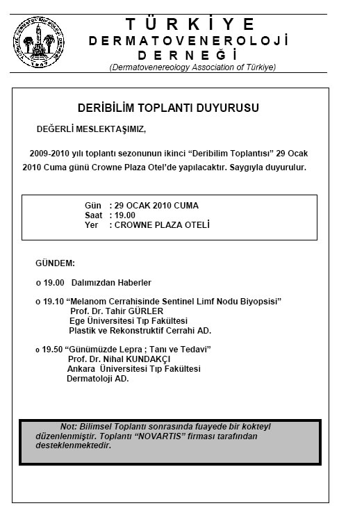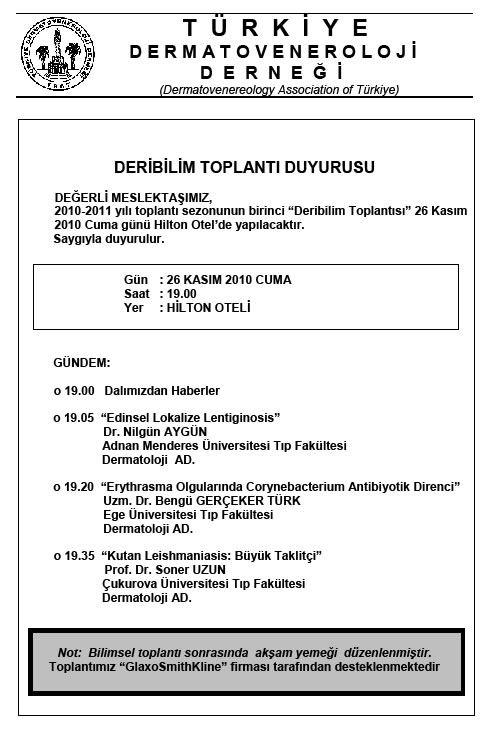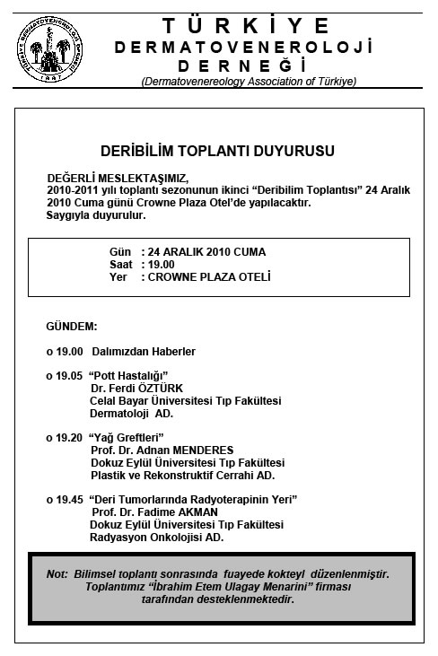 Türkiye Dermatoveneroloji Derneği 2010 Yılı Deribilim Toplantı İçerikleri