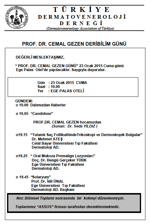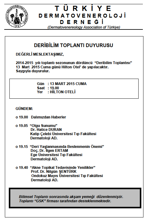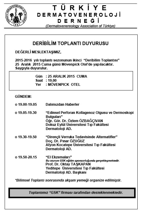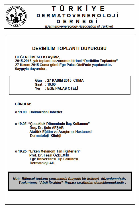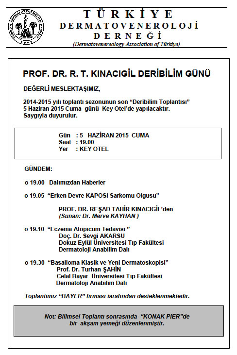 Türkiye Dermatoveneroloji Derneği 2015 Yılı Deribilim Toplantı İçerikleri
