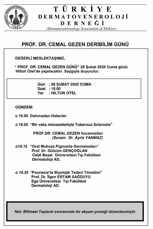 Türkiye Dermatoveneroloji Derneği 2020 Yılı Deribilim Toplantı İçerikleri